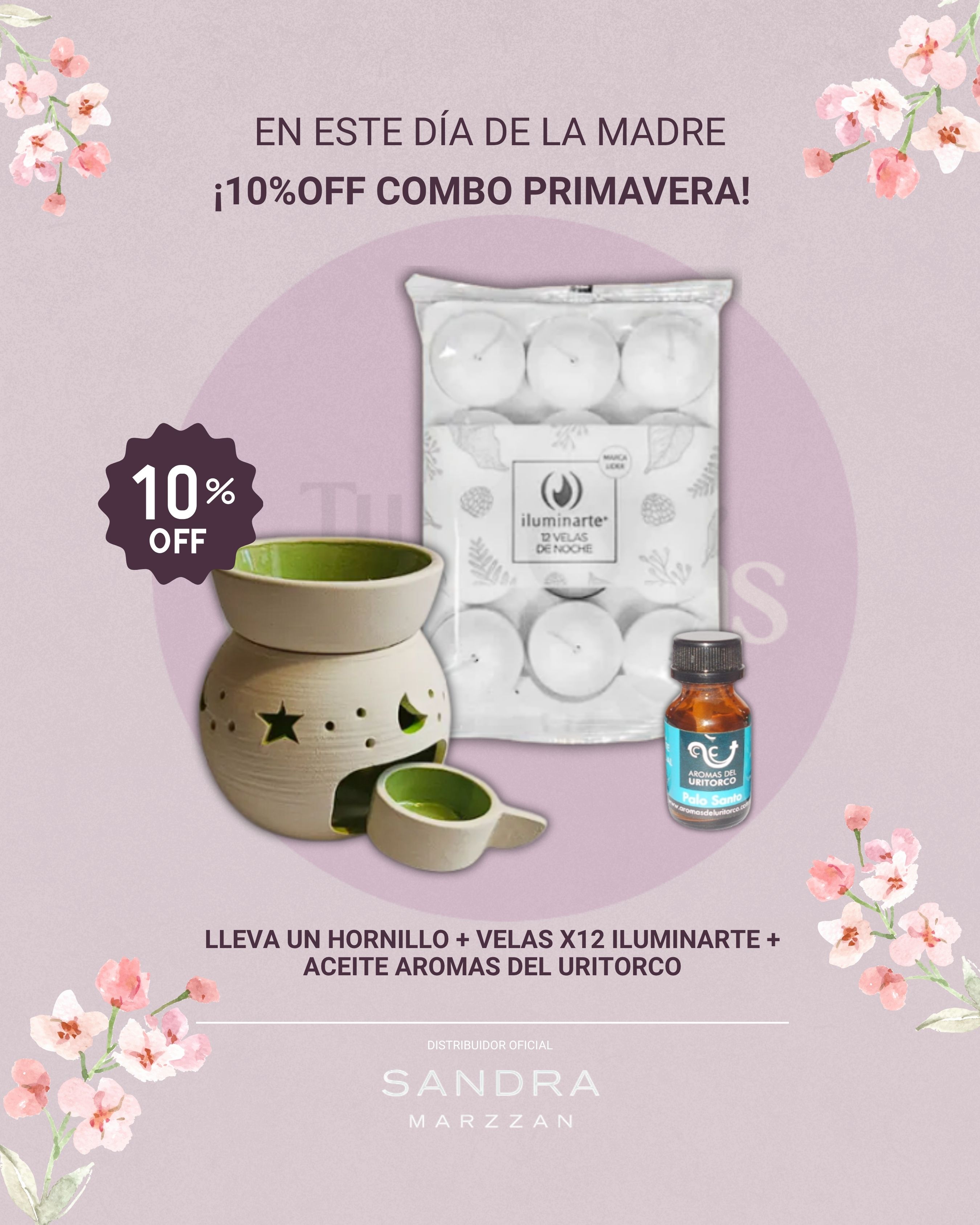 ¡10%OFF PROMO PRIMAVERA! Hornillo+Velas x12+Aceite Aromas del Uritorco
